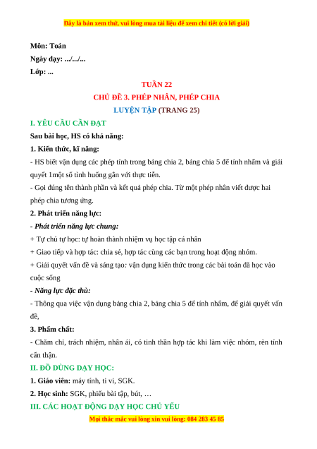 CHỦ ĐỀ 3. PHÉP NHÂN, PHÉP CHIA