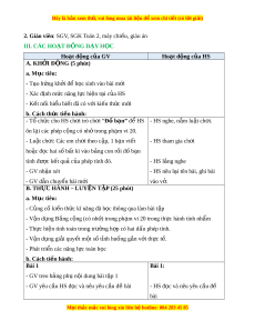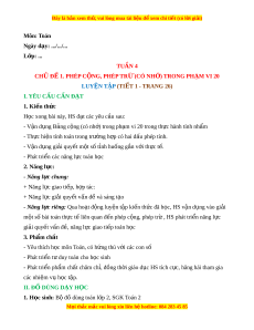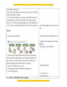 ự riêng: Qua ho t ạ đ ng ộ luy n t ệ p ậ ki n t ế h c đã h ứ c, ọ HS v n d ậ ng vào ụ gi i ả m t ộ số bài toán th c t ự l ế iên quan đ n phép ế c ng, phép t ộ r , H ừ S phát tri n năng ể l c ự gi i ả quy t ế v n đ ấ , ề năng l c gi ự ao ti p t ế oán h c ọ 3. Phẩm ch t ấ - Yêu thích h c m ọ ôn Toán, có h ng t ứ hú v i ớ các con số - Phát tri n t ể duy t ư oán cho h c s ọ inh - Phát tri n ph ể m ẩ ch t