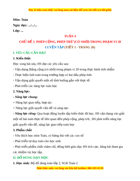 Ộ G, PHÉP TRỪ (CÓ NH ) Ớ TRONG PH M Ạ VI 20 LUYỆN TẬP (TI T Ế 1 - TRANG 26)