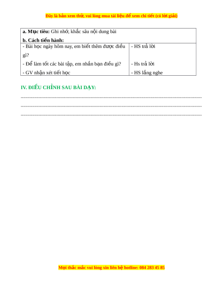 IV. ĐI U CH NH SAU BÀI D Y:Ề Ỉ Ạ