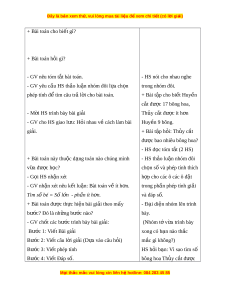 ọ sinh: SGK, phi u bài ế t p, ậ bút, … III. CÁC HO T Ạ Đ N Ộ G D Y Ạ H C Ọ CH Ủ Y U Ế Hoạt đ ng c ộ a G ủ V Hoạt đ ng c ộ a H ủ S A. KH I Ở Đ N Ộ G (5 phút) a. Mục tiêu: - T o h ạ ng ứ kh i ở cho HS bư c vào ớ bài h c m ọ i ớ - Bi t ế cách gi i ả và trình bày bài gi i ả bài toán v nhi ề u h ề n. ơ - Liên h ki ệ n t ế h c ứ đã h c vào gi ọ i ả quy t ế m t ộ s t ố ình hu ng g ố n v ắ i ớ th c t ự ế cu c ộ sống h ng