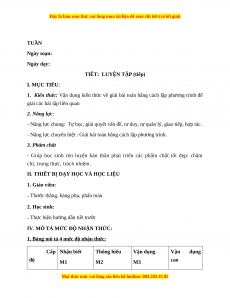 - Năng lực chuyên biệt : Giải bài toán bằng cách lập phương trình. 3. Phẩm chất