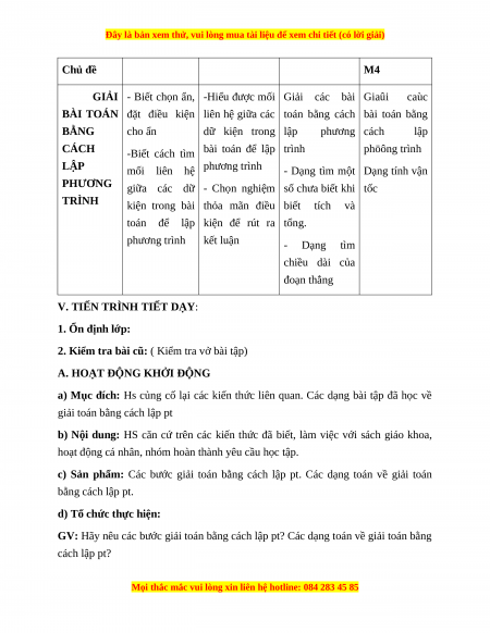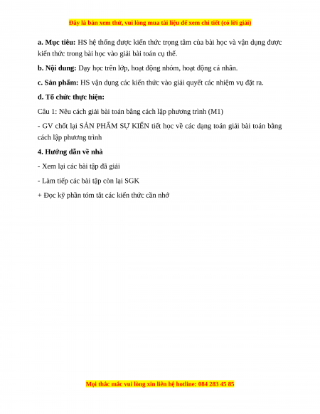 b) Nội dung: giải bài toán bằng cách lập phương trình