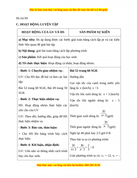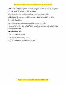 c) Sản phẩm: Các bước giải toán bằng cách lập pt. Các dạng toán về giải toán bằng cách lập pt.