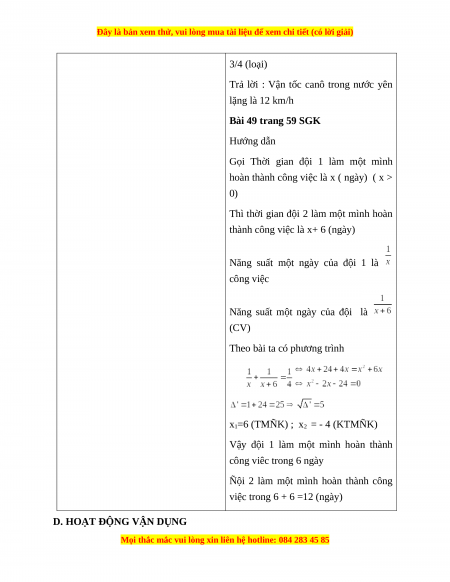 Trả lời : Vận tốc canô trong nước yên lặng là 12 km/h Bài 49 trang 59 SGK Hướng dẫn