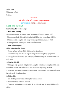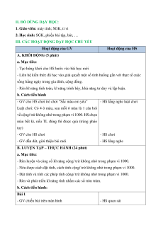 - Nêu được cách đặt tính, cách tính cộng/ trừ không nhớ trong phạm vi 1000.