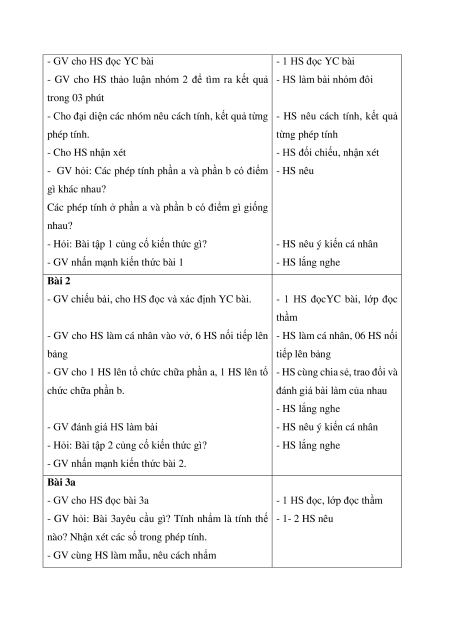 - Rèn kĩ năng tính toán, kĩ năng trình bày, khả năng tư duy và lập luận. b. Cách tiến hành