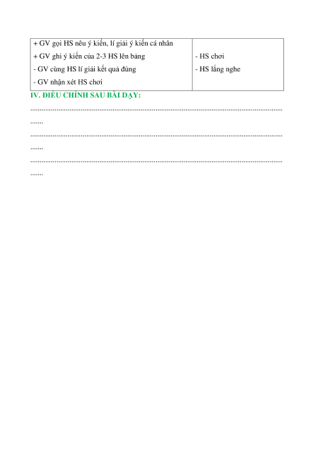 IV. ĐIỀU CHỈNH SAU BÀI DẠY: