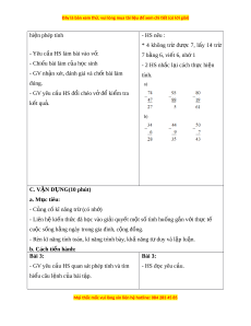 ệ bài và ghi tên bài: “Luy n ệ - HS ghi tên bài t p” ậ B. TH C Ự HÀNH – LUY N Ệ T P Ậ (17 phút) a. Mục tiêu: - C ng c ủ ố kĩ năng Th c hi ự n phép t ệ r có nh ừ ớ - Liên h ki ệ n t ế h c ứ đã h c vào gi ọ i ả quy t ế m t ộ s t ố ình hu ng g ố n v ắ i ớ th c t ự ế