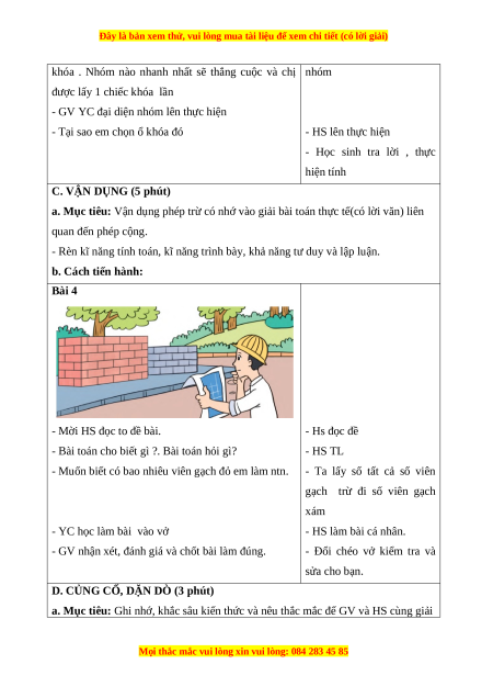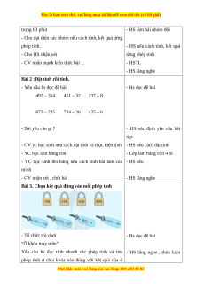 - Ôn tập thực hiện được phép cộng, phép trừ (không nhớ và có nhớ) trong phạm vi