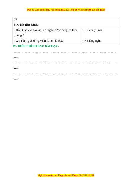 - Rèn kĩ năng tính toán, kĩ năng trình bày, khả năng tư duy và lập luận. b. Cách tiến hành