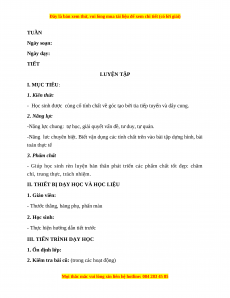 TUẦN Ngày soạn: Ngày dạy: TIẾT LUYỆN TẬP I. MỤC TIÊU: 1. Kiến thức