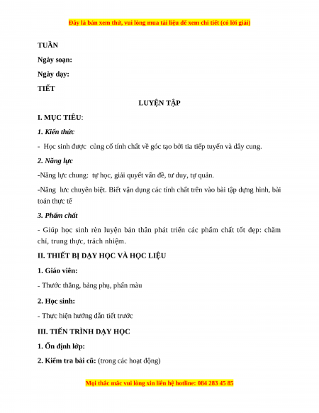 - Học sinh được củng cố tính chất về góc tạo bởi tia tiếp tuyến và dây cung.