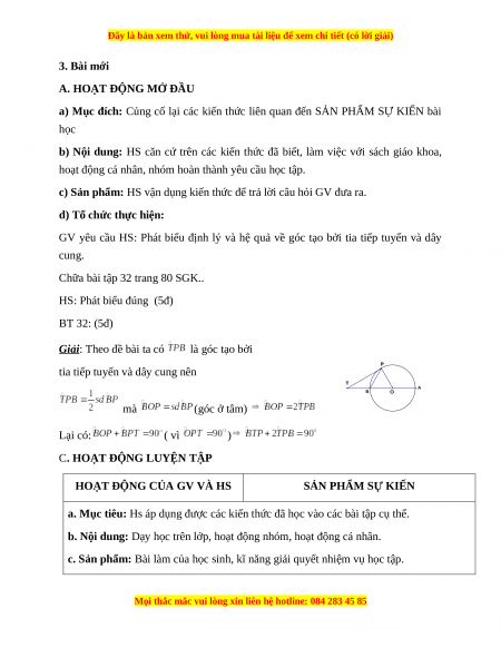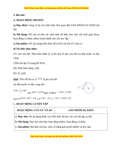 - Học sinh được củng cố tính chất về góc tạo bởi tia tiếp tuyến và dây cung. 2. Năng lực