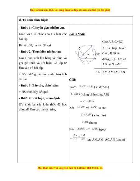 dùng để làm các bài tập trên, Xét và ta có : ( c/m trên) chung Nên: (g-g) hay AM.AM=AC.AN (đpcm)
