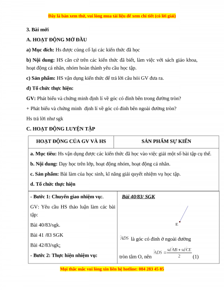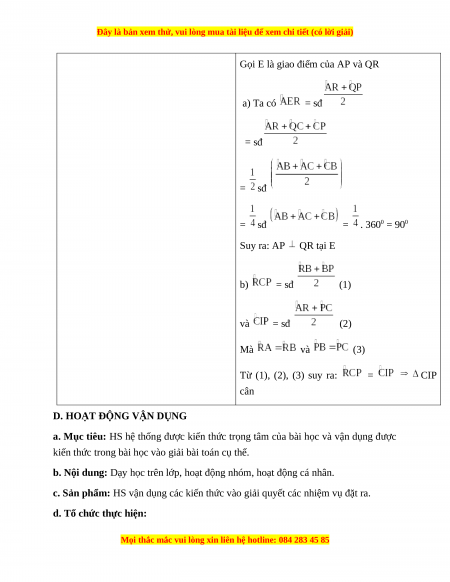 - Vận dụng định nghĩa, định lý và hệ quả Góc có đỉnh ở bên trong đường tròn.