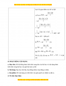 -Năng lưc chuyên biệt. Biết Vận dụng được các định lí để chứng minh các bài tập, bài toán thực tế. 3. Phẩm chất