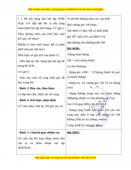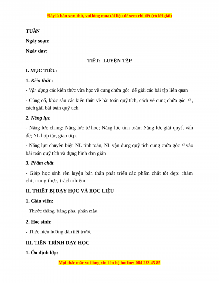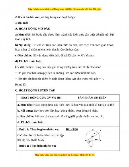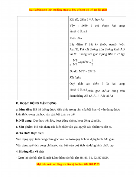 - Năng lực chuyên biệt: NL tính toán, NL vận dung quỹ tích cung chứa góc vào