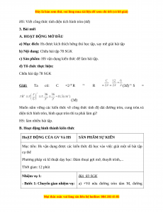 - Năng lưc chuyên biệt. Biết tính độ dài cung tròn, tính diện tích hình tròn S= ,