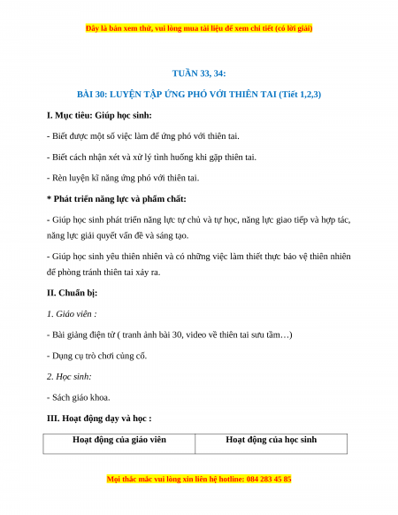 BÀI 30: LUYỆN TẬP ỨNG PHÓ VỚI THIÊN TAI (Tiết 1,2,3)