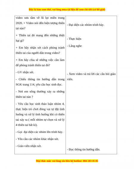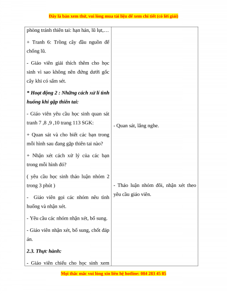 - Biết cách nhận xét và xử lý tình huống khi gặp thiên tai.