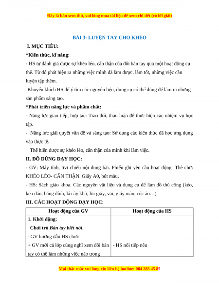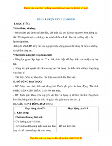 BÀI 3: LUYỆN TAY CHO KHÉO I. MỤC TIÊU: