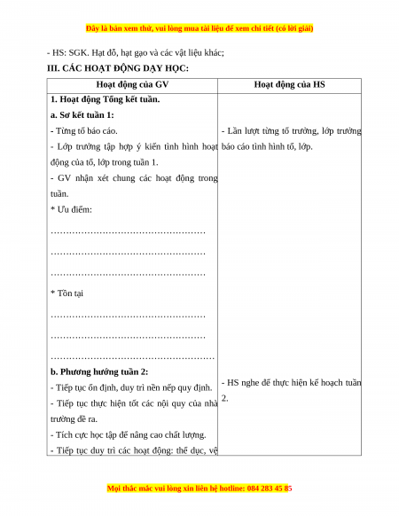 - HS nhớ lại những việc mình đã thực hiện được trong tuần. GV hướng dẫn HS