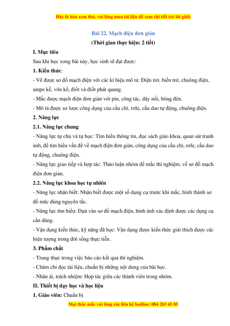 - Mắc được mạch điện đơn giản với pin, công tác, dây nối, bóng đèn.