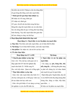 Giáo án Mạch điện đơn giản Vật lí 8 Kết nối tri thức