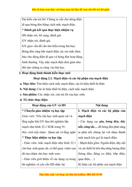 b. Nội dung: Đưa ra tình huống: có một pin, một bóng đèn, một công tắc, các đoạn