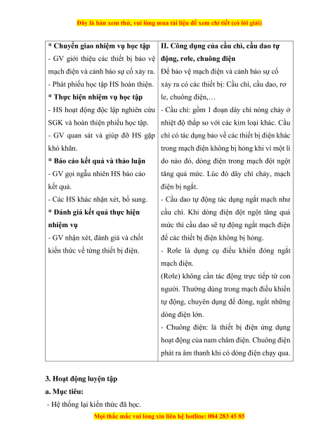 - Mô tả được sơ lược công dụng của cầu chì, rơle, cầu dao tự động, chuông điện. 2. Năng lực