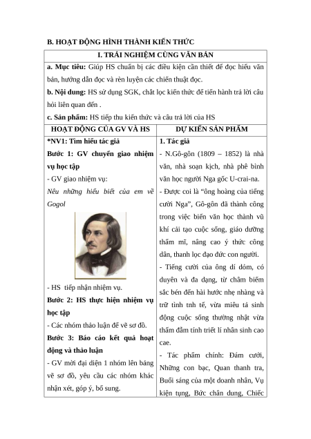 Bước 1: GV chuyển giao nhiệm - N.Gô-gôn (1809 – 1852) là nhà vụ học tập