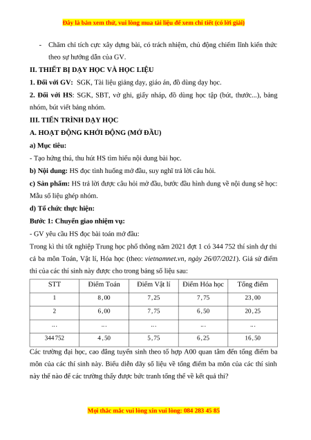 Giáo án Mẫu số liệu ghép nhóm Toán 11 Kết nối tri thức