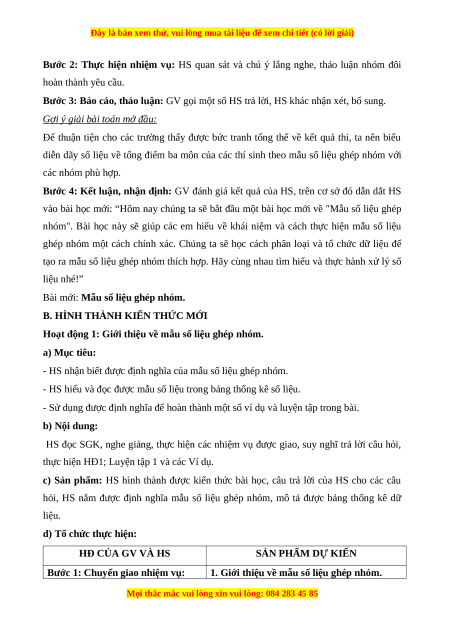 Bước 1: Chuyển giao nhiệm vụ: 1. Giới thiệu về mẫu số liệu ghép nhóm.