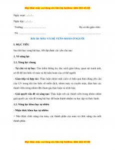 thiếu tiểu cầu, nêu được ý nghĩa thông tin về nhóm máu trong sổ khám sức khỏe. 2. Về phẩm chất