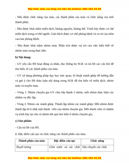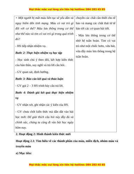 Hoạt động 2.1: Tìm hiểu về các thành phần của máu, miễn dịch, nhóm máu và truyền máu a) Mục tiêu: