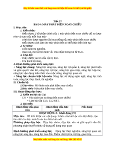 Bài 34: MÁY PHÁT ĐI N Ệ XOAY CHI U Ề I. M c t ụ iêu 1. Ki n ế th c: ứ - Hi u ể đư c ợ 2 b ộ ph n ậ chính c a ủ 1 máy phát đi n ệ xoay chi u ề ch ỉra đư c ợ rôto và stato c a ủ m i ỗ lo i ạ máy - Trình bày đư c nguyên t ợ c ắ ho t ạ đ ng ộ c a m ủ áy phát đi n xoay chi ệ u ề - Hi u đ ể ư c