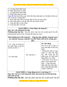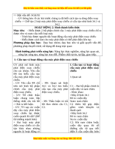 ợ cách làm cho máy phát đi n có t ệ h phát ể đi n l ệ iên t c ụ Phư ng ơ pháp d y ạ h c: ọ D y ạ h c ọ nhóm; d y ạ h c ọ nêu và gi i ả quy t ế v n ấ đề; phư ng ơ pháp thuy t ế trình; s d ử ng đ ụ ồ dung tr c ự quan Đ nh h ị ư ng ớ phát tri n năng l ể c ự : Năng l c t ự h c nghi ự m ệ , năng l c quan s ự át, năng l c s ự áng t o, năng l ạ c ự trao đ i ổ . Ph m ẩ ch t ấ t t ự in, t l ự p, ậ giao ti p. ế 1: C u t ấ ạo và ho t ạ đ ng c ộ a m ủ