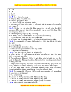 Câu 6: Trong máy phát đi n ệ xoay chi u, ề rôto ho t ạ đ ng ộ nh ư th ế nào khi máy làm vi c? ệ A. Luôn đ ng yên. ứ B. Chuy n đ ể ng ộ đi l i ạ nh con t ư hoi. C. Luôn quay tròn quanh m t ộ tr c t ụ heo m t ộ chi u. ề D. Luân phiên đ i ổ chi u quay ề . Câu 7: Ch n phát ọ bi u ể sai khi nói v b ề góp đi ộ n. ệ A. Đ ng ộ cơ đi n ệ m t ộ chi u ề không có bộ ph n ậ góp đi n, ệ máy phát đi n ệ xoay chi u ề có b ph ộ n góp đi ậ ện. B. Trong đ ng ộ cơ đi n ệ m t ộ chi u, ề bộ góp đi n ệ g m ồ hai vành bán khuyên ngoài tác d ng ụ làm đi n ệ c c ự đ a ư dòng đi n ệ m t ộ chi u ề vào đ ng ộ c ơ nó còn có tác d ng ch ụ nh l ỉ u. ư C. Bộ góp đi n ệ trong máy phát đi n ệ xoay chi u ề v i ớ cu n ộ dây quay có nhi m ệ v l ụ àm đi n c ệ c ự đ a dòng đi ư n xoay chi ệ u t