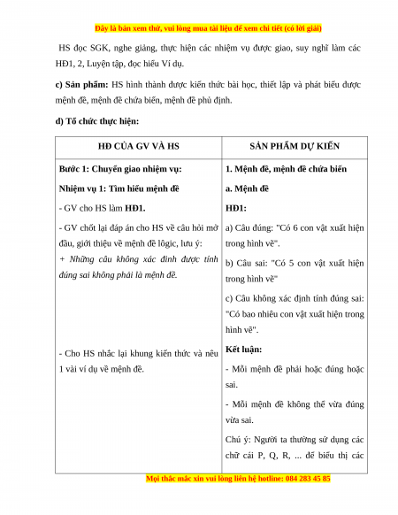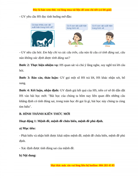 - HS làm quen với mệnh đề qua việc xác định các phát biểu đúng sai.