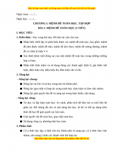 BÀI 1: MỆNH ĐỀ TOÁN HỌC (3 TIẾT) I. MỤC TIÊU: