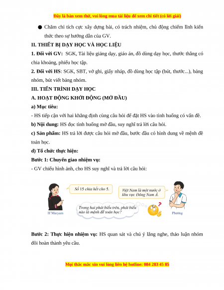 2. Đối với HS: SGK, SBT, vở ghi, giấy nháp, đồ dùng học tập (bút, thước...), bảng