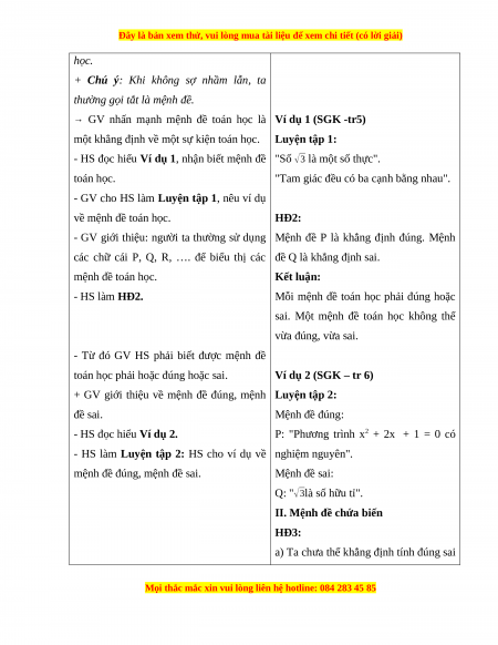 → GV nhấn mạnh mệnh đề toán học là Ví dụ 1 (SGK -tr5)