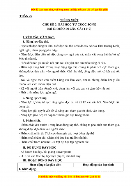 Bài 13: MÈO ĐI CÂU CÁ (T1+2) I. YÊU CẦU CẦN ĐẠT: