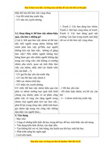 3.2. Hoạt động 4: Để làm việc nhóm hiệu