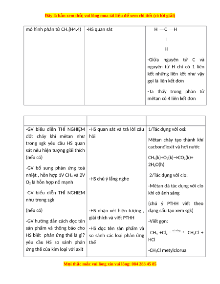Đây là bản xem th , vu ử i lòng mua tài li u ệ đ xe ể m chi ti t (c ế ó l i ờ gi i ả ) mô hình phân tử CH4(H4.4) -HS quan sát H C H H -Giữa nguyên tử C và