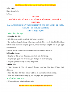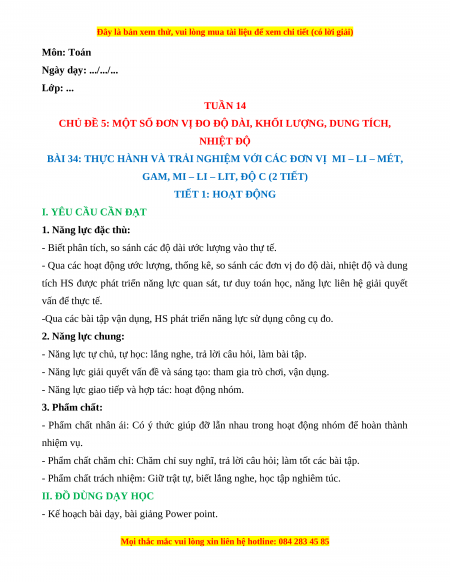 BÀI 34: THỰC HÀNH VÀ TRẢI NGHIỆM VỚI CÁC ĐƠN VỊ MI – LI – MÉT,