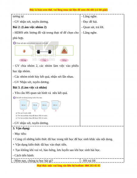 - Qua các bài tập vận dụng, HS phát triển năng lực sử dụng công cụ đo. - Cách tiến hành: