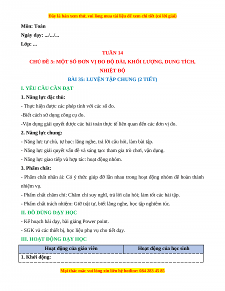 CHỦ ĐỀ 5: MỘT SỐ ĐƠN VỊ ĐO ĐỘ DÀI, KHỐI LƯỢNG, DUNG TÍCH, NHIỆT ĐỘ