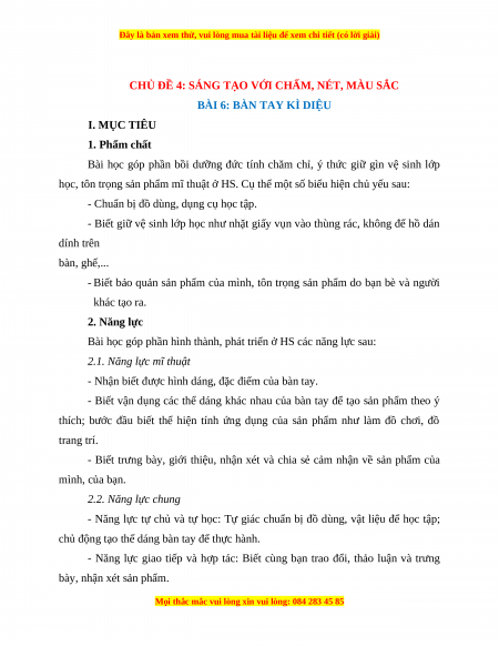BÀI 6: BÀN TAY KÌ DIỆU I. MỤC TIÊU 1. Phẩm chất